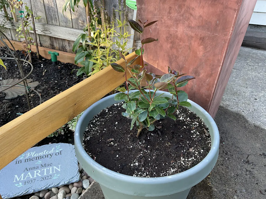- Burgundy new growth adds color even when not in bloom.