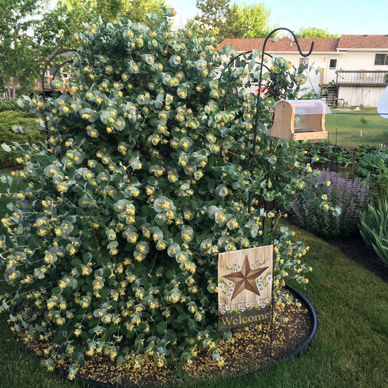 - Yellow trumpet blooms and blue foliage attracts butterflies.